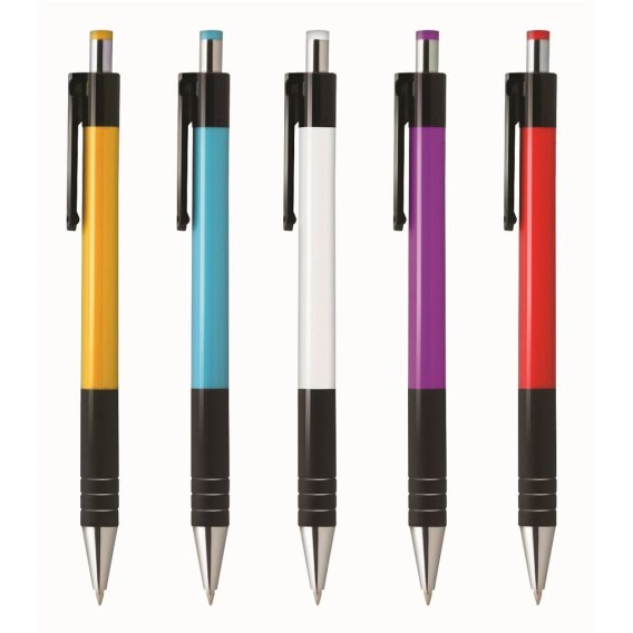 Długopis w obudowie z tworzywa sztucznego. Nadaje się pod nadruk metodą tampodruku.