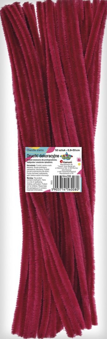 Druciki kreatywne, kolor: fuksjowy jasny, długość: 30 cm, szerokość: 0,6 cm. 50 sztuk.