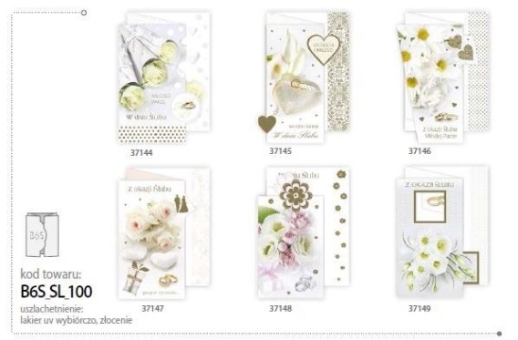 Kartka składana ślubna Pol-Mak B6 złocona mix wzorów (B6S)
