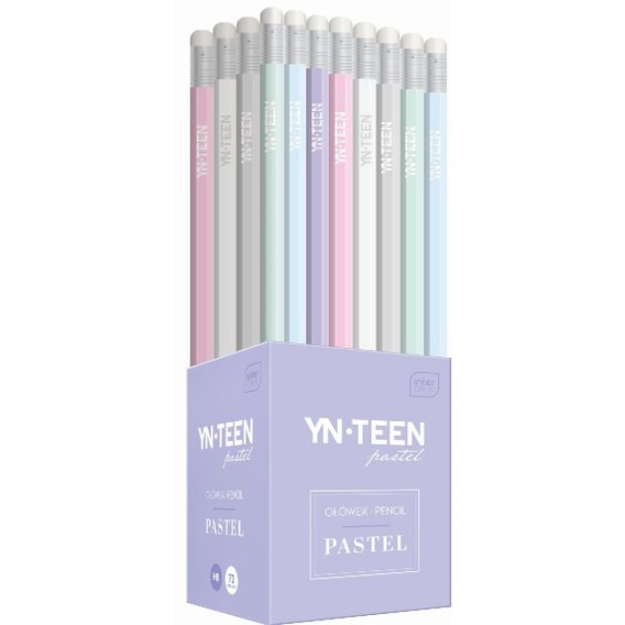Ołówek HB. Heksagonalny profil. Zakończony białą gumką. Do wyboru 6 pięknych, pastelowych kolorów. 72 szt. w kubiku. Poznaj nasze pozostałe pastelowe akcesoria i produkty papiernicze i stwórz swój zestaw!
