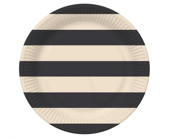 Talerz jednorazowy paski czarno beżowe papier śr. 180mm 6 szt Godan (PG-TPA3)