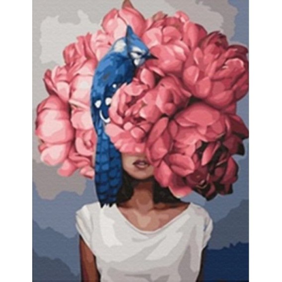 DIAMENTOWA MOZAIKA KOBIETA GŁOWA Z KWIATÓW+ PTAK ABSTRAKCJA PAK 60 30 40 CM